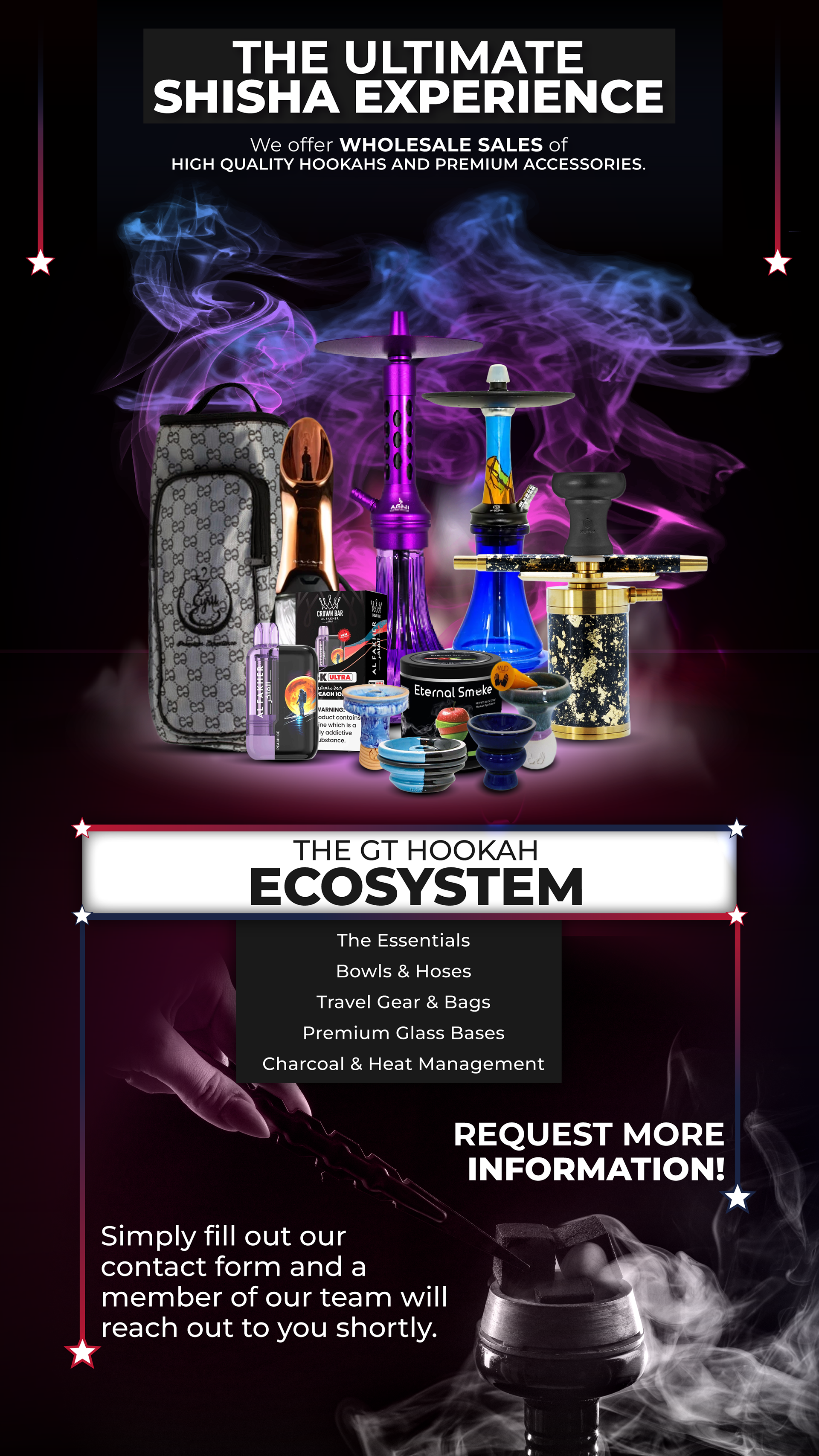GT Hookah es una empresa líder en distribución y venta minorista, con sede principal en Miami (Doral), Florida. Aunque operan con fuerza en el mercado estadounidense, su "empresa madre" tiene raíces en España, lo que les ha permitido actuar como un puente clave para traer las marcas europeas más exclusivas y de alta ingeniería al continente americano.