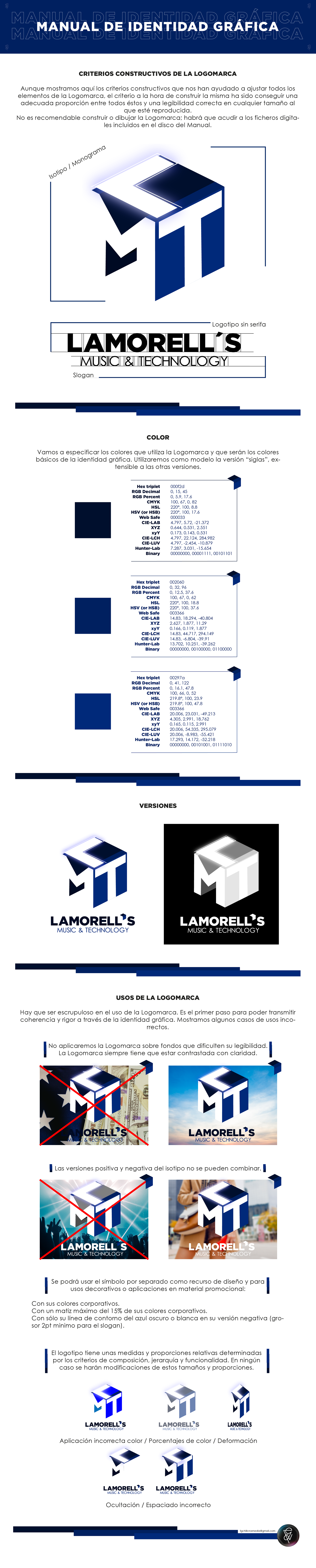 Este proyecto consistió en el desarrollo integral de la identidad de marca para Lamorells M & T, donde el desafío principal fue fusionar la elegancia y la sofisticación con una estructura visual moderna y profesional. El resultado fue la creación de un sistema de marca sólido que comunica exclusividad y atención al detalle en cada punto de contacto.